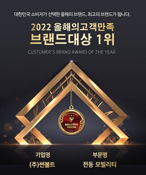 썬볼트 모빌리티 ‘22년 올해의 고객만족 브랜드 대상 1위’ 수상